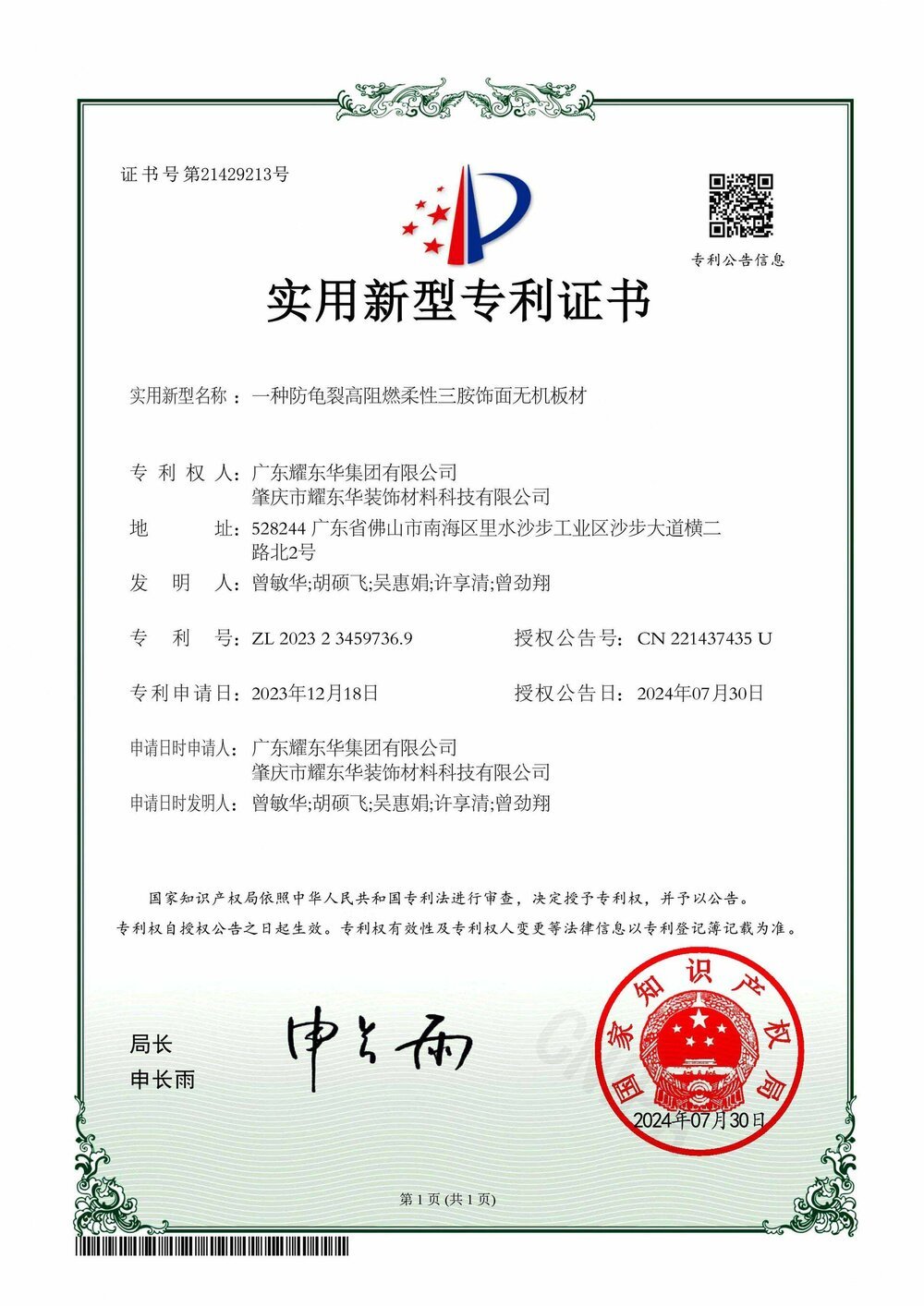 一种防龟裂高阻燃柔性三胺饰面无机板材