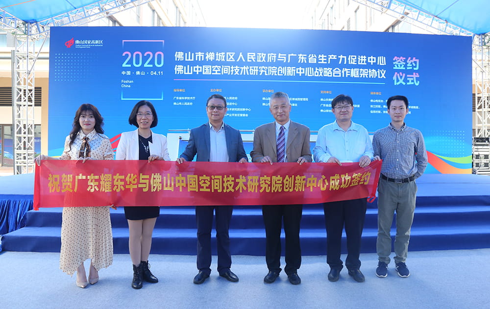 2020年4月11日,“佛山市禅城区人民政府与广东省生产力促进中心、佛山中国空间技术研究院创新中心战略合作框架协议”签约仪式,在佛山市禅城区M+产业小镇成功举办。在签约仪式上,广东耀东华与佛山中国空间技术研究院创新中心成功签约,结成产研合作战略联盟。