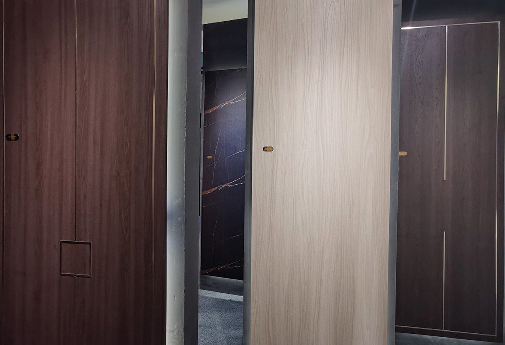 “红棉花”精准对纹饰面板:采用三点定位摄像技术和定位图像计算机处理技术,确认±1mm的定位精度,耐磨、耐划痕、耐污染、耐香烟灼烧、耐光色牢等,能够较好地还原天然实木、石材、皮革、布料等质感,具有免漆、环保、时尚、逼真的特点,受到国内一线定制家具品牌企业和房地产公司(例如尚品宅配、好莱客、欧派、顶固、碧桂园、万科、富力等)的喜爱及选用。
